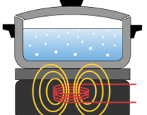 elementet til bunnen av kokekaret. Det sterke magnetfeltet induserer en strøm i bunnen